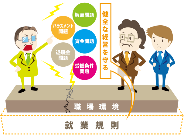 しかし、会社のミッションである収益拡大には、社員がやる気を出して、何の不安もなく働ける環境整備が重要です。そのためには、一定のルール作り、すなわち就業規則を的確に整備することが会社発展の第一歩といえます。